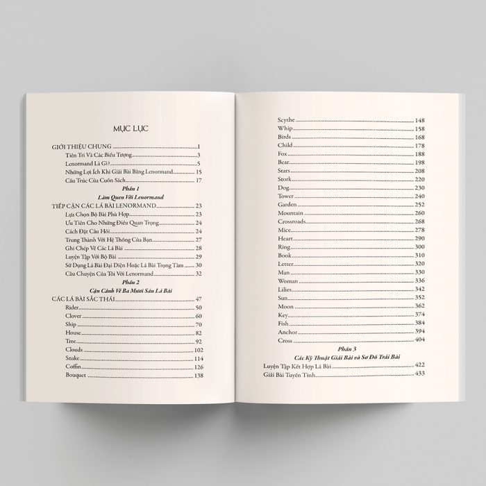 Lenormand Nhập Môn là cuốn sách dành cho những ai muốn bước vào thế giới của cỗ bài Lenormand 36 lá nổi tiếng đã tồn tại hơn 200 năm. Khác với Tarot có tính biểu tượng phức tạp, hình ảnh trên từng lá Lenormand lại được thiết kế giản dị, trực quan và gần gũi, giúp người giải dễ dàng gợi mở câu trả lời một cách rõ ràng, trực tiếp. Trong hành trình phát triển, Lenormand đã trở thành công cụ chiêm đoán phổ biến trên toàn cầu, đặc biệt bùng nổ tại Hoa Kỳ như một hiện tượng văn hóa tâm linh. Cuốn sách cung cấp hệ thống hướng dẫn đầy đủ từ cơ bản đến nâng cao, bao gồm mô tả tổng quan ý nghĩa của từng lá bài, chỉ dẫn từng bước để thực hành trải bài, và cách áp dụng Lenormand vào nhiều lĩnh vực thực tế như tình yêu, sự nghiệp, tài chính hay gia đình.