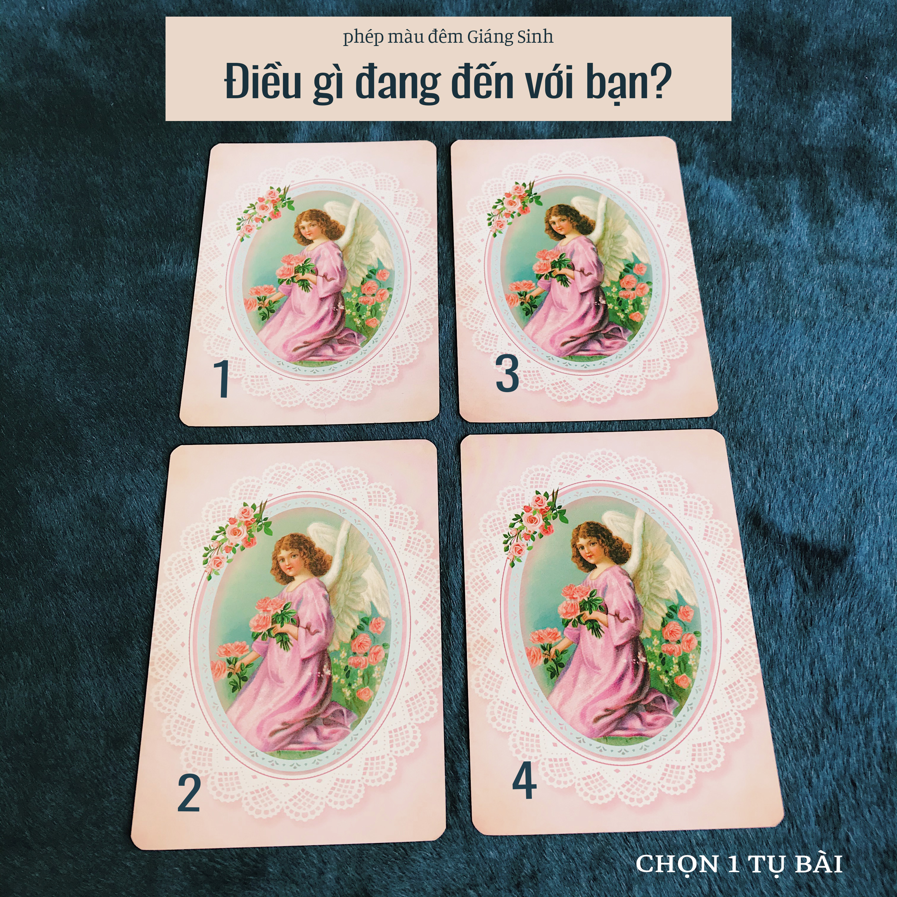 Giáng Sinh là thời điểm phép màu có thể diễn ra bất cứ lúc nào, đó là khi mọi khó khăn dần qua đi và may mắn sẽ đến. Niềm tin vào những điều tốt đẹp sẽ thúc đẩy phép màu đến với bạn thật nhanh. Bạn có muốn biết điều gì sẽ đến với bạn trong dịp Giáng Sinh này không? Hãy chọn một tụ bài cho riêng mình và đón nhận kết quả nhé!